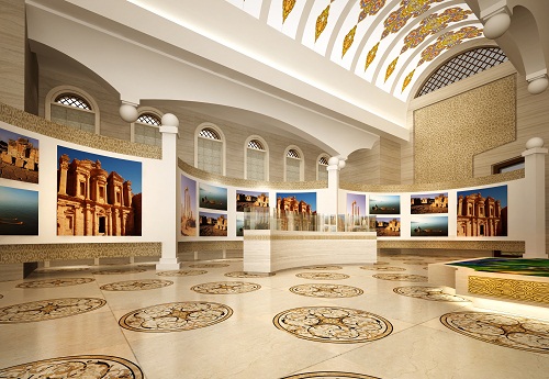 走進(jìn)展館里面,首先映入游客約旦哈希姆王國幾個(gè)大字,這樣也是將展館內(nèi)部的異域風(fēng)情顯現(xiàn)的是淋漓盡致,展館里面還擺放著很多展品供游客進(jìn)行參觀,大家既可以看到石器時(shí)代的石器,青銅時(shí)代的青銅也可以看到古羅馬時(shí)期的短劍和面具,同時(shí)為了全方位展示約旦國,整個(gè)展館也是通過音視頻資料,LED大屏,3D沙盤 以及運(yùn)用聲光影像等高科技手段,來全方位展現(xiàn)約旦國的發(fā)展情況。
